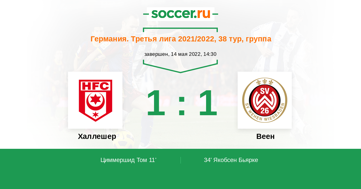 Германия. Третья лига 16.05.2021 Халлешер Логотип футбольный клуб Халлешер 4:0 Логотип футбольный клуб Веен (Висбаден) Веен