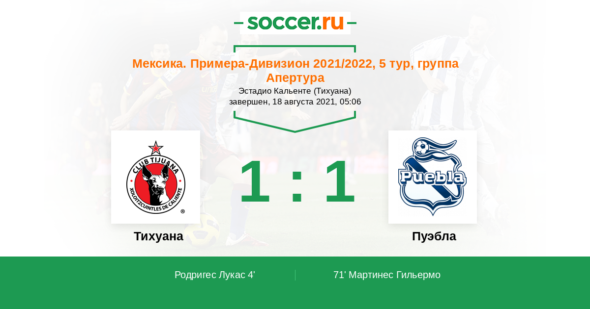 Мексика. Примера-Дивизион 13.08.2022 Тихуана Логотип футбольный клуб Тихуана 3:3 Логотип футбольный клуб Пуэбла (Пуэбла-де-Сарагоса) Пуэбла