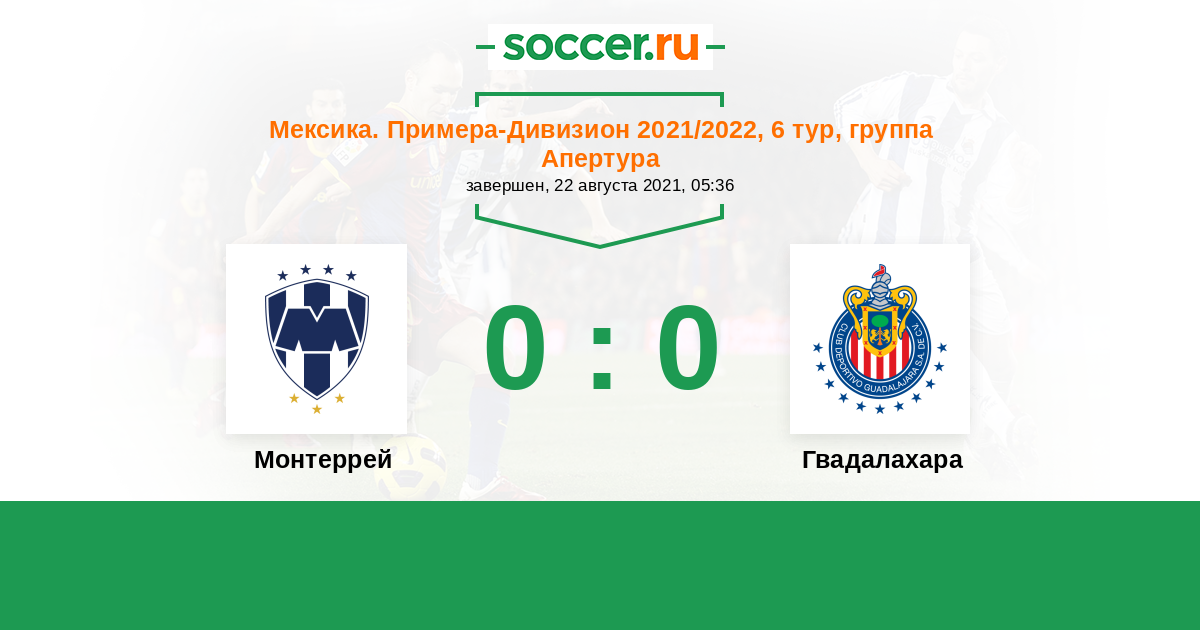 Мексика. Примера-Дивизион 24.08.2022 Гвадалахара Логотип футбольный клуб Гвадалахара 1:0 Логотип футбольный клуб Монтеррей Монтеррей