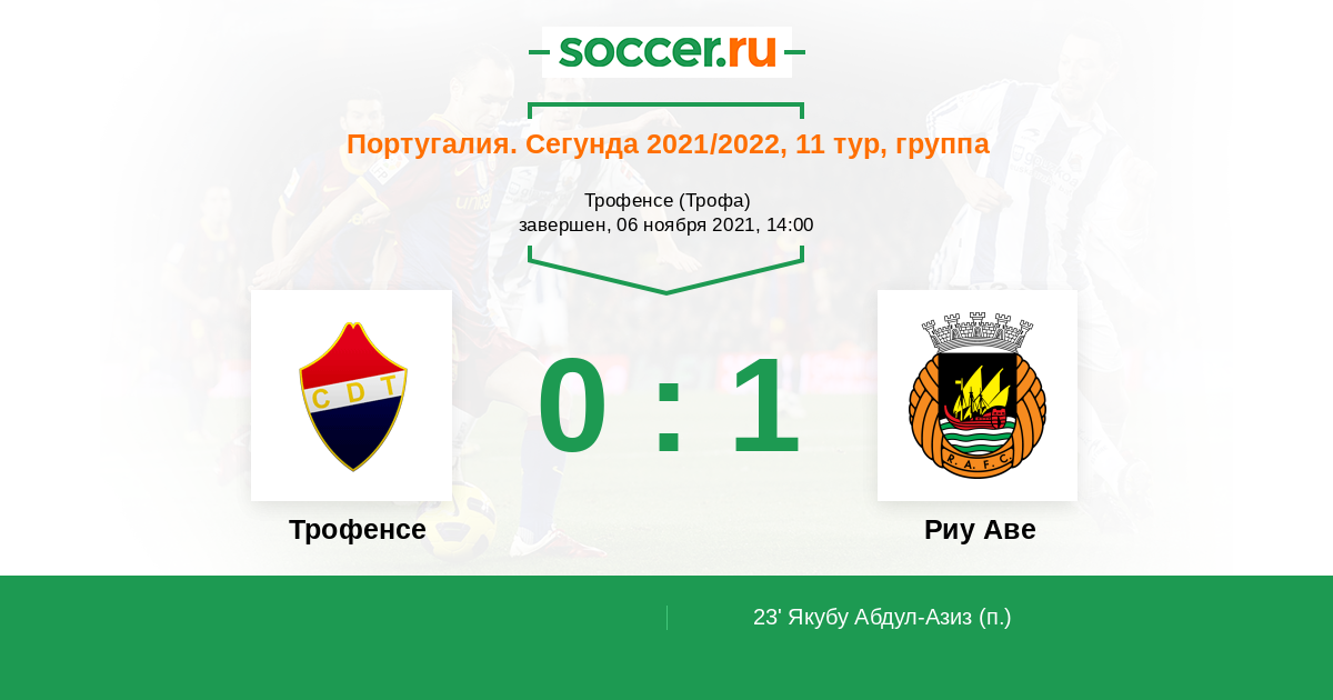 Португалия. Сегунда 02.04.2022 Риу Аве Логотип футбольный клуб Риу Аве (Вила-ду-Конди) 1:0 Логотип футбольный клуб Трофенсе (Трофа) Трофенсе
