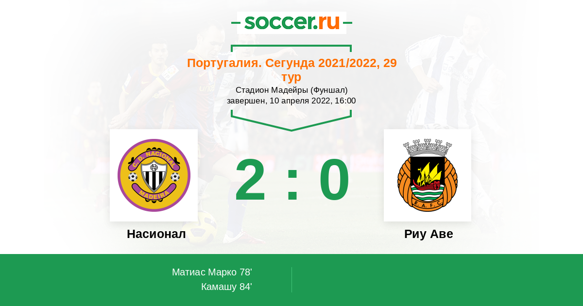 Португалия. Примейра 19.05.2021 Насионал Логотип футбольный клуб Насионал (Фуншал) 1:2 Логотип футбольный клуб Риу Аве (Вила-ду-Конди) Риу Аве