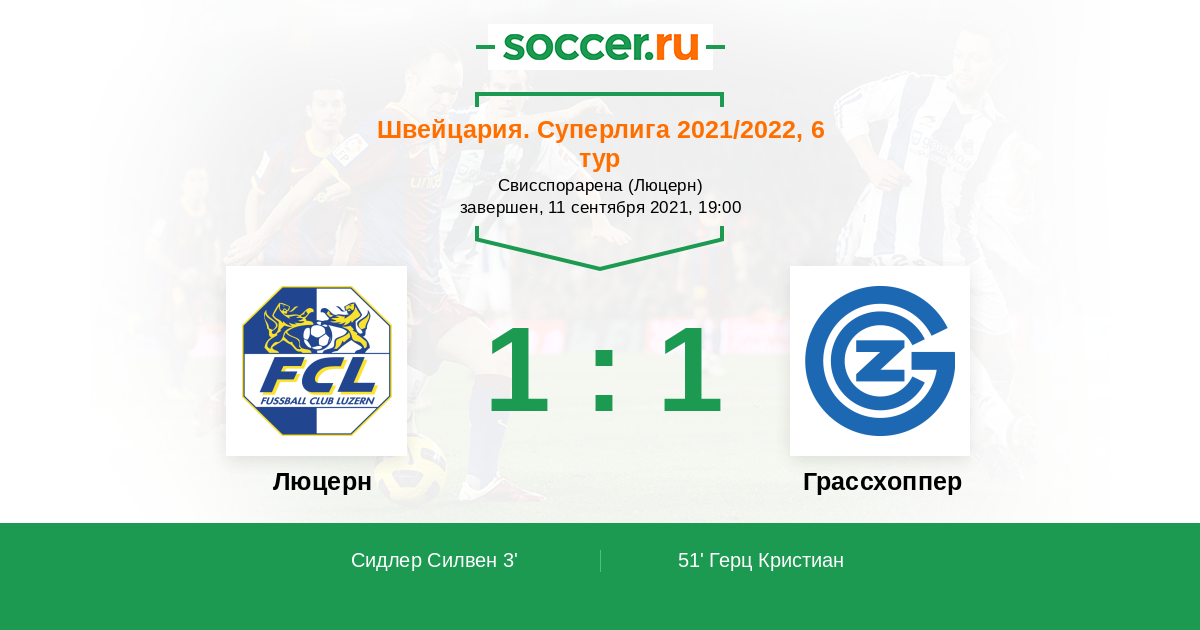 Швейцария. Суперлига 12.12.2021 Грассхоппер Логотип футбольный клуб Грассхоппер (Цюрих) 1:1 Логотип футбольный клуб Люцерн Люцерн