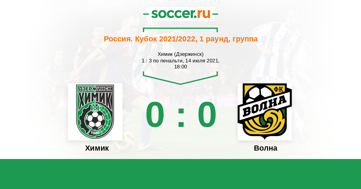 Россия. Вторая лига. Группа 2 31.10.2021 Химик Логотип футбольный клуб Химик (Дзержинск) 0:1 Логотип футбольный клуб Волна (Ковернино) Волна
