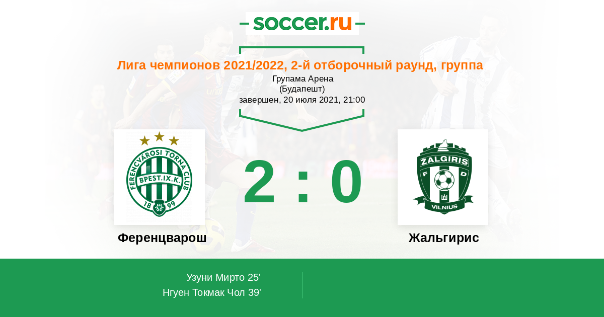 Венгерский клуб Ференцварош должен на своем поле одолеть не хватавший с неба звезд литовский Жальгирис. Жду крупной победы хозяев поля. Ранее команды между собой не играли. Это будет первая игра.
