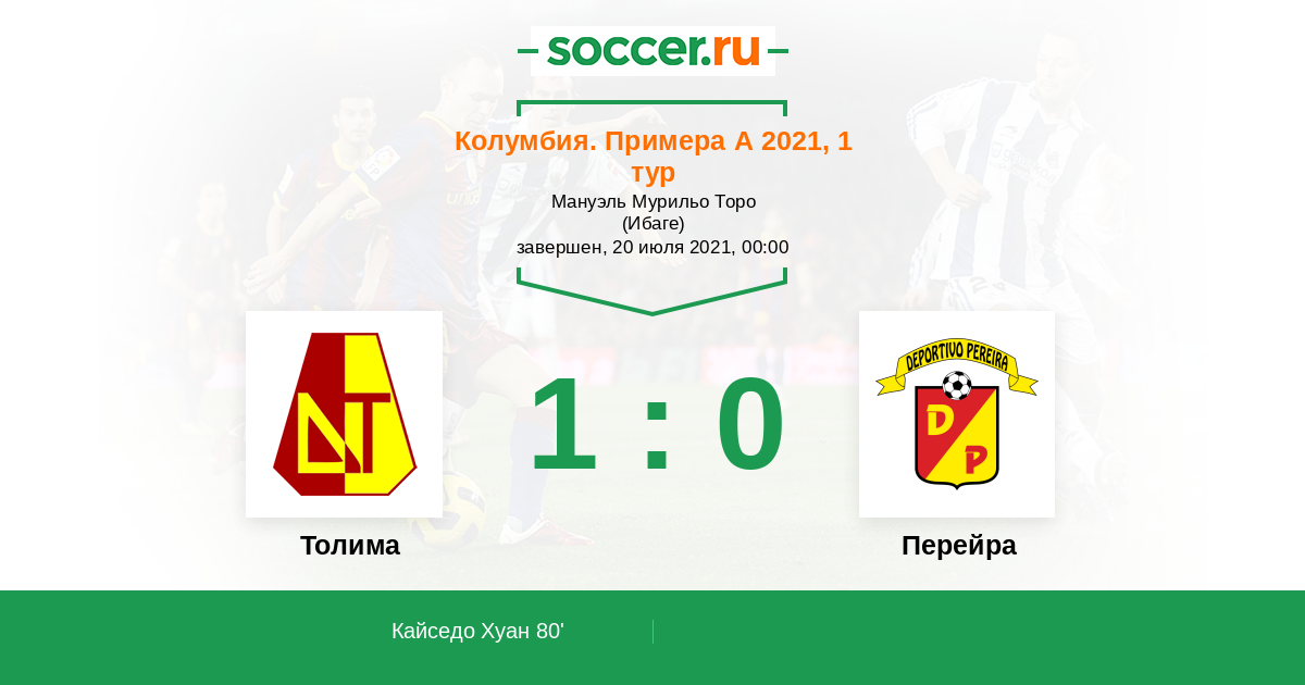 Колумбия. Примера А 26.07.2025 Толима Логотип футбольный клуб Толима (Ибаге) 1:0 Логотип футбольный клуб Перейра Перейра