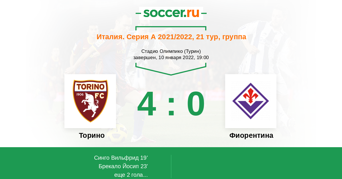 Обе команды проводят сезон ниже ожиданий, но всё же «Фиорентина» выглядит лучше. Вполне возможно, что именно зимние трансферы помогут «фиалкам» добирать очки в матчах, в которых им это делать не удавалось до середины чемпионата. «Торино» выглядят печально, да и статистика очных встреч на стороне гостей.