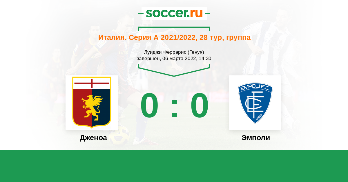 Италия. Серия А 05.11.2021 Эмполи Логотип футбольный клуб Эмполи 2:2 Логотип футбольный клуб Дженоа (Генуя) Дженоа