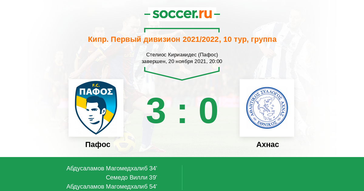 Кипр. Первый Дивизион 03.01.2021 Ахнас Логотип футбольный клуб Ахнас 2:1 Логотип футбольный клуб Пафос Пафос