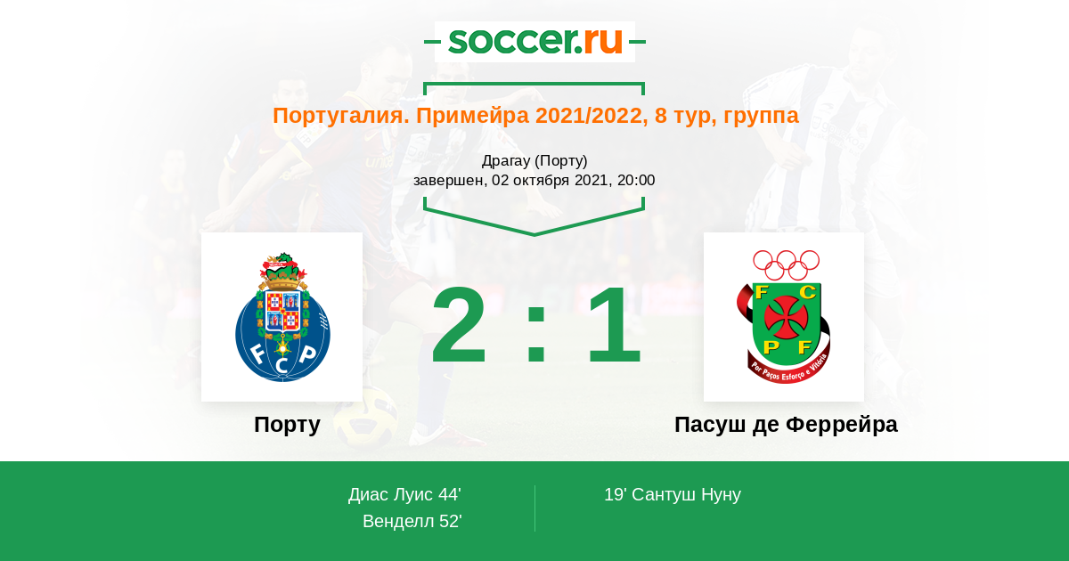 Португалия. Примейра 30.10.2020 Пасуш де Феррейра Логотип футбольный клуб Пасуш де Феррейра 3:2 Логотип футбольный клуб Порту Порту