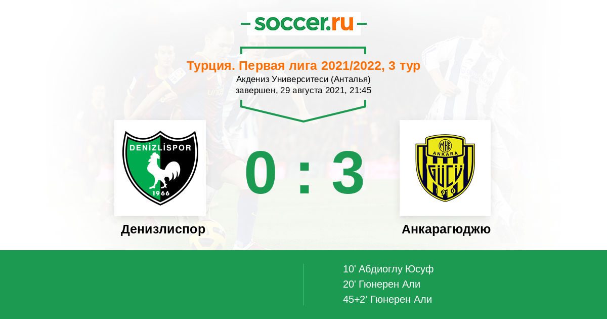 Турция. Первая лига 22.01.2022 Анкарагюджю Логотип футбольный клуб Анкарагюджю 2:1 Логотип футбольный клуб Денизлиспор Денизлиспор