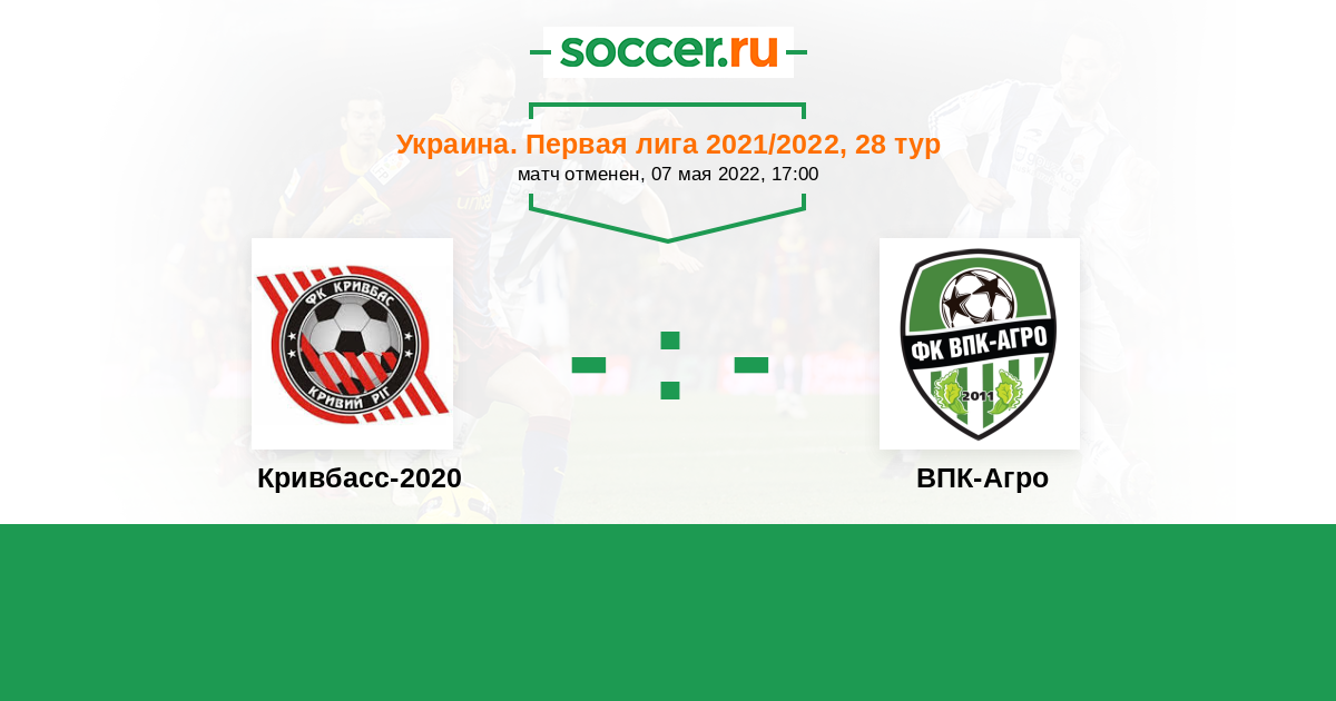 Украина. Первая лига 10.10.2021 ВПК-Агро Логотип футбольный клуб ВПК-Агро (Шевченковка) 0:0 Логотип футбольный клуб Кривбасс-2020 (Кривой Рог) Кривбасс-2020