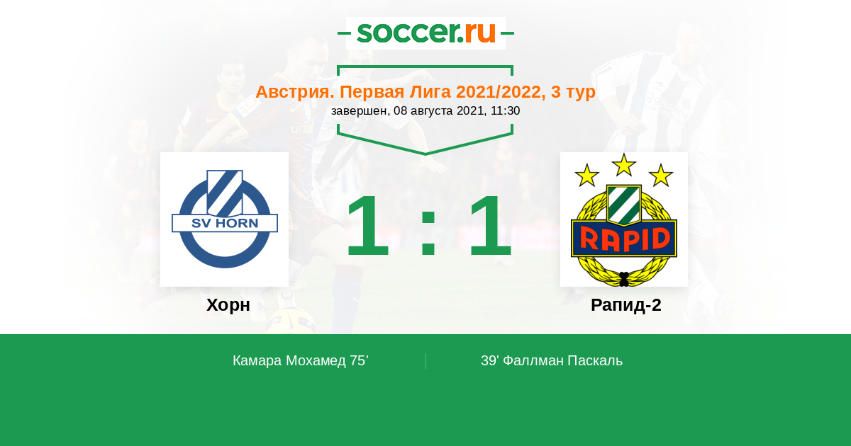Австрия. Первая Лига 18.04.2021 Рапид-2 Логотип футбольный клуб Рапид-2 (Вена) 1:0 Логотип футбольный клуб Хорн Хорн