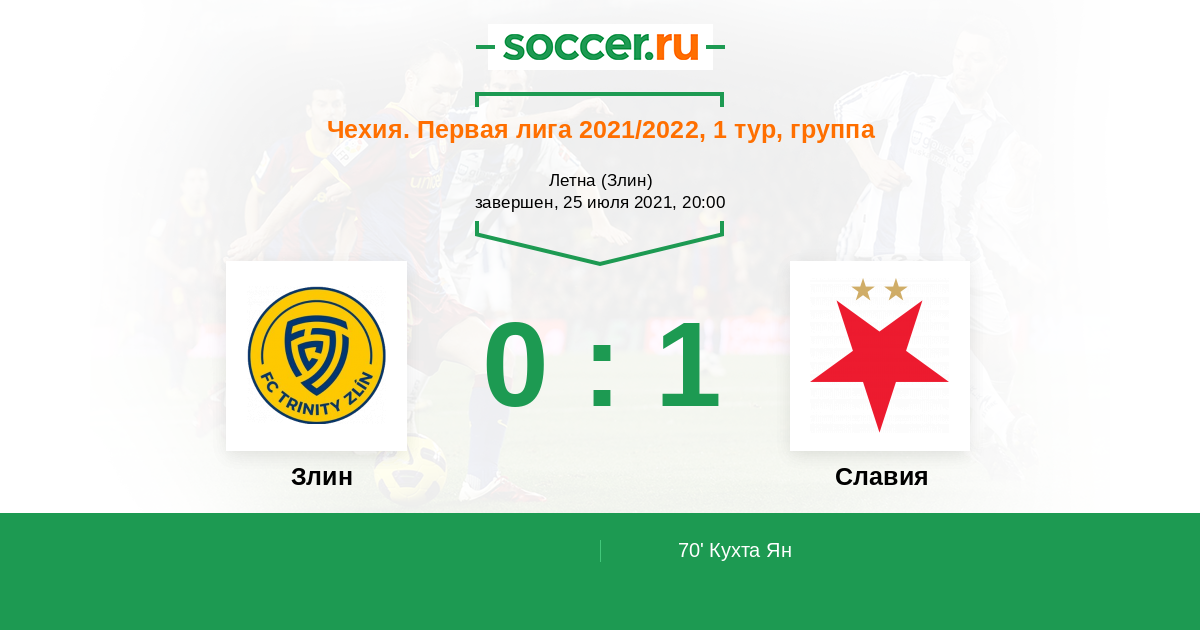 Чехия. Первая Лига 15.07.2019 Злин Логотип футбольный клуб Злин 0:1 Логотип футбольный клуб Славия (Прага) Славия