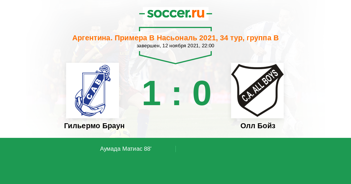 Аргентина. Примера Б Насьональ 17.07.2021 Олл Бойз Логотип футбольный клуб Олл Бойз (Буэнос-Айрес) 3:0 Логотип футбольный клуб Гильермо Браун (Пуэрто-Мадрин) Гильермо Браун
