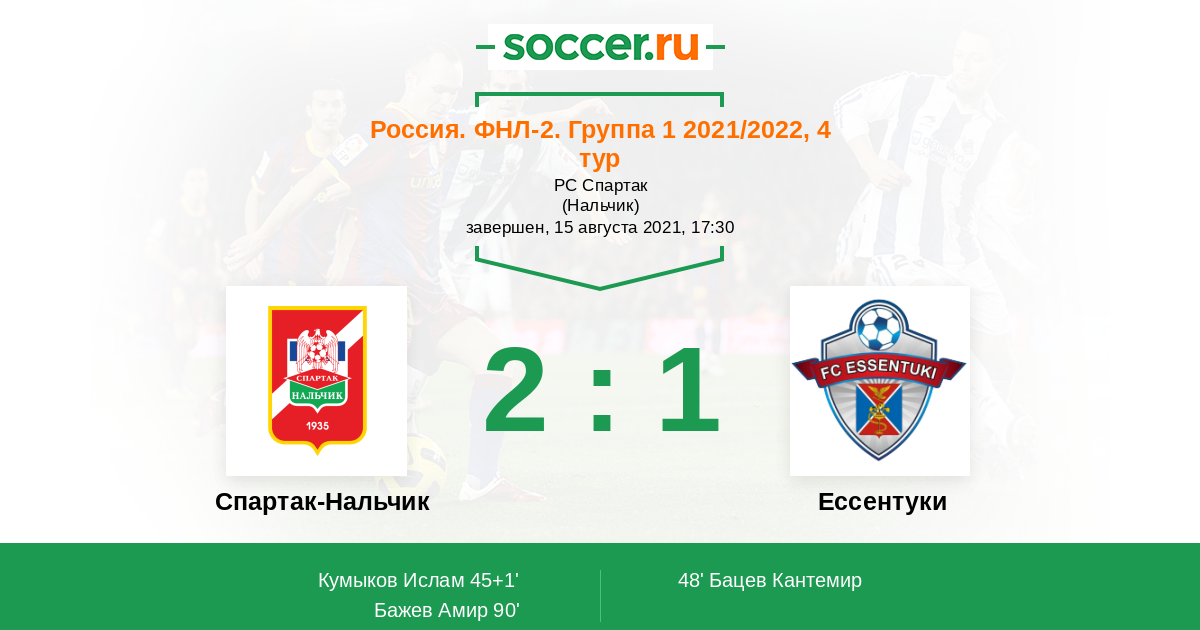 Россия. Вторая лига. Группа 1 08.10.2022 Спартак-Нальчик Логотип футбольный клуб Спартак-Нальчик 1:0 Логотип футбольный клуб Ессентуки Ессентуки