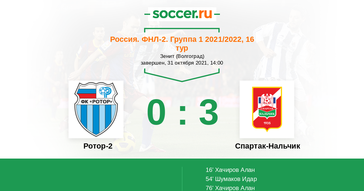 Россия. Вторая лига. Группа 1 22.05.2022 Спартак-Нальчик Логотип футбольный клуб Спартак-Нальчик 2:0 Логотип футбольный клуб Ротор-2 (Волгоград) Ротор-2