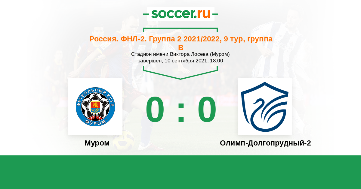 Россия. Вторая лига. Группа 2 30.10.2021 Олимп-Долгопрудный-2 Логотип футбольный клуб Олимп-Долгопрудный-2 1:1 Логотип футбольный клуб Муром Муром