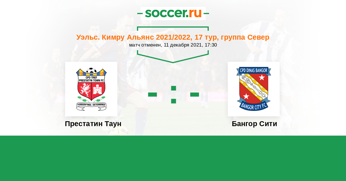 Уэльс. Премьер-Лига 21.12.2014 Престатин Таун Логотип футбольный клуб Престатин Таун 1:2 Логотип футбольный клуб Бангор Сити Бангор Сити