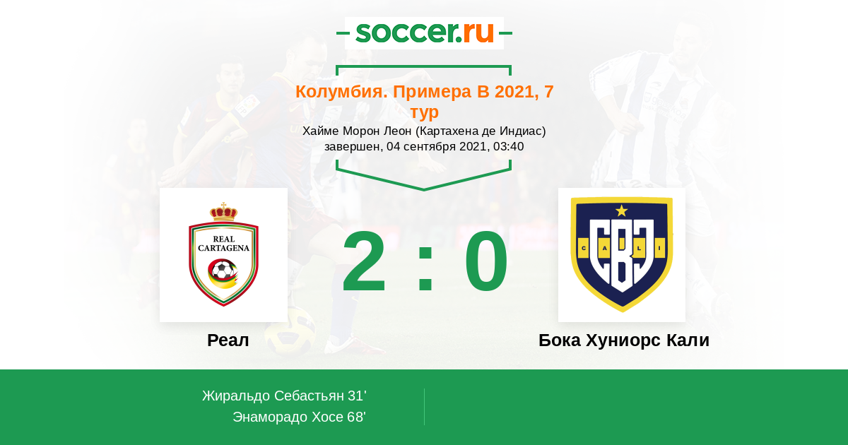 Колумбия. Примера B 03.03.2021 Реал Логотип футбольный клуб Реал (Картахена) 1:1 Логотип футбольный клуб Бока Хуниорс Кали (Сантьяго-де-Кали) Бока Хуниорс Кали