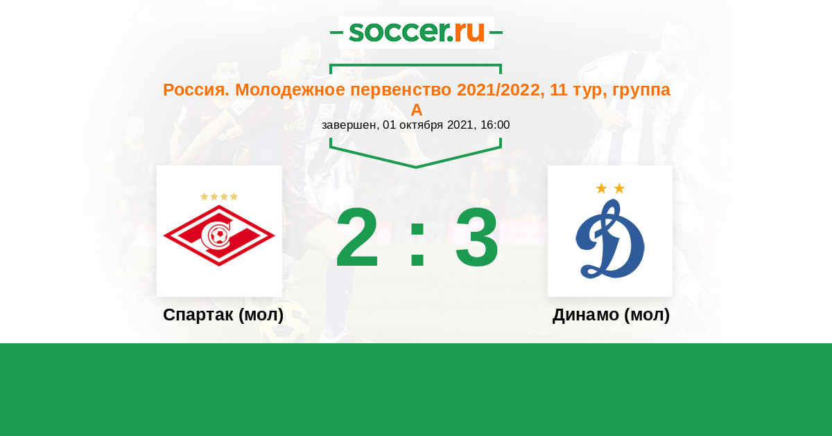 Россия. Премьер-Лига U21 24.10.2015 Динамо (мол) Логотип футбольный клуб Динамо (мол) (Москва) 3:0 Логотип футбольный клуб Спартак (мол) (Москва) Спартак (мол)