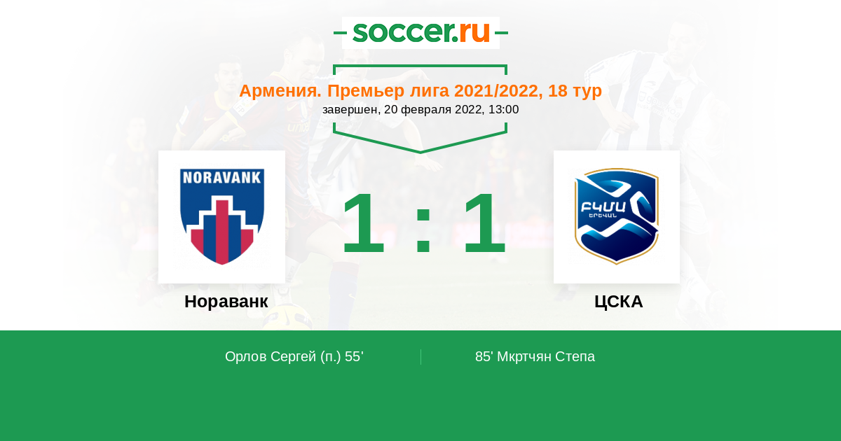 Армения. Премьер-лига 16.04.2022 ЦСКА Логотип футбольный клуб ЦСКА (Ереван) 0:1 Логотип футбольный клуб Нораванк (Ереван) Нораванк