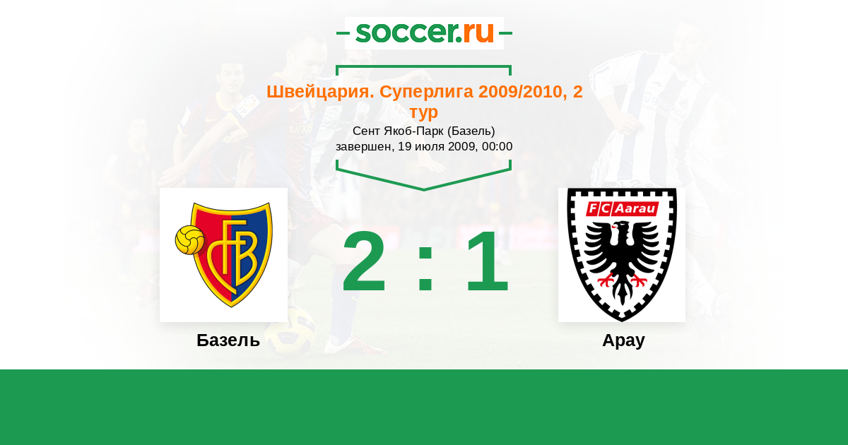 Швейцария. Суперлига 26.09.2009 Арау Логотип футбольный клуб Арау 0:2 Логотип футбольный клуб Базель Базель