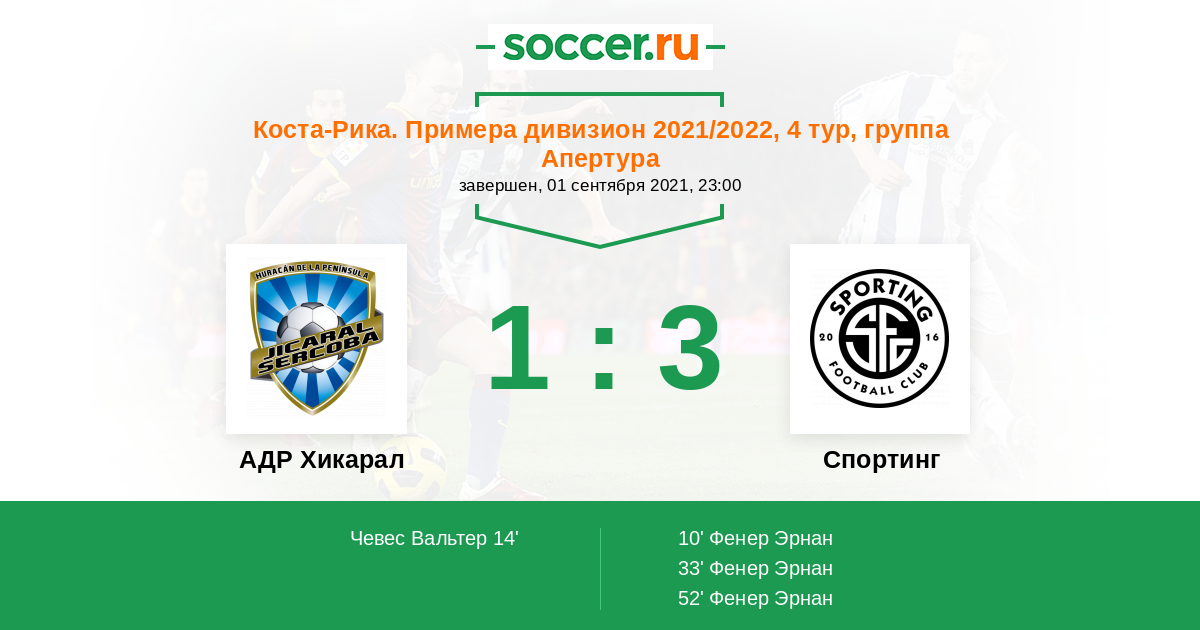 Коста-Рика. Примера дивизион 27.09.2020 АДР Хикарал Логотип футбольный клуб АДР Хикарал 3:1 Логотип футбольный клуб Спортинг Сан-Хосе Спортинг Сан-Хосе
