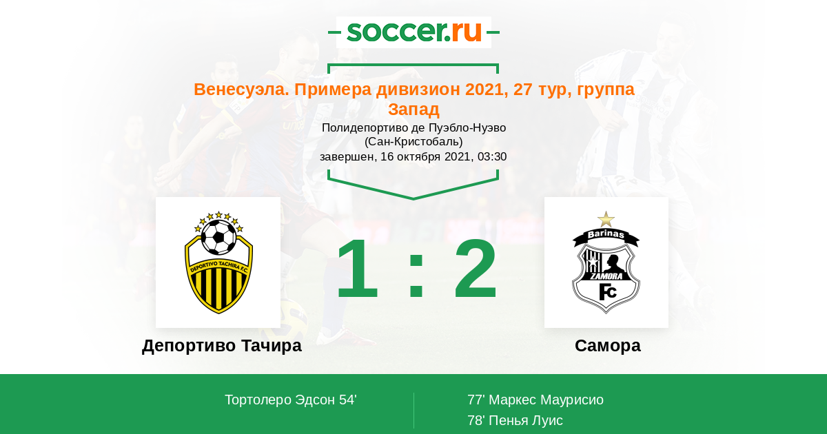 Венесуэла. Примера дивизион 30.08.2021 Замора Логотип футбольный клуб Замора (Баринас) 0:1 Логотип футбольный клуб Депортиво Тачира (Сан-Кристобаль) Депортиво Тачира