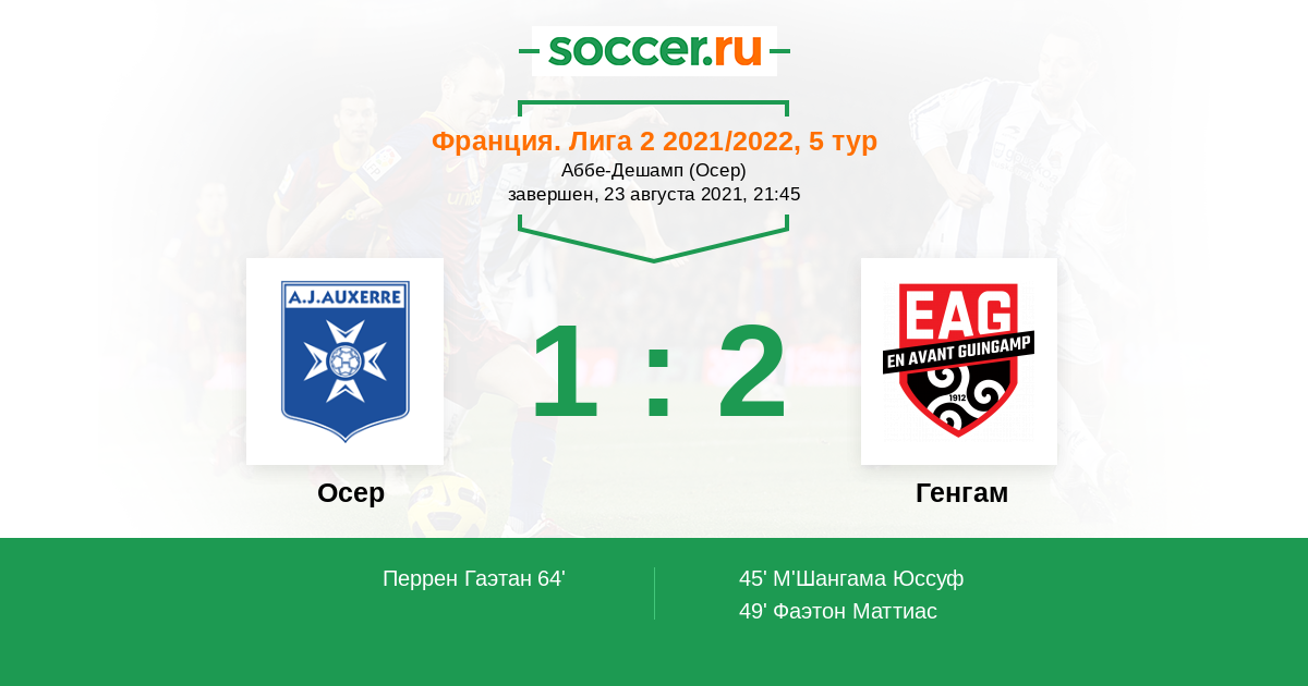 Франция. Лига 2 05.02.2022 Генгам Логотип футбольный клуб Генгам 1:1 Логотип футбольный клуб Осер Осер