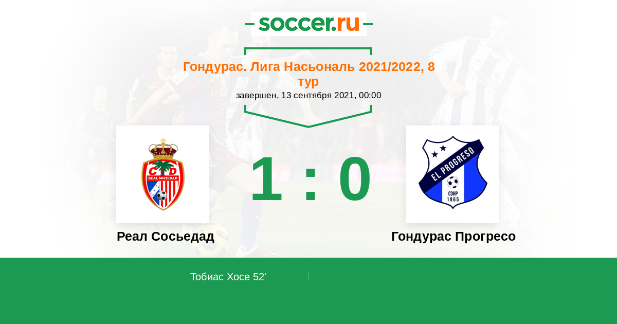 Гондурас. Лига Насьональ 10.02.2022 Реал Сосьедад Логотип футбольный клуб Реал Сосьедад (Токоа) 4:2 Логотип футбольный клуб Гондурас Прогресо (Эль-Прогресо) Гондурас Прогресо