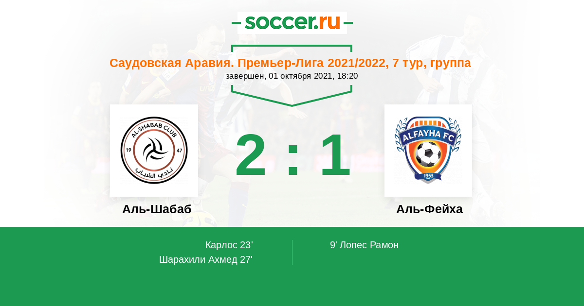 Саудовская Аравия. Премьер-Лига 02.10.2022 Аль-Фейха Логотип футбольный клуб Аль-Фейха (Аль-Маджмаа) 1:2 Логотип футбольный клуб Аль-Шабаб (Эр-Рияд) Аль-Шабаб