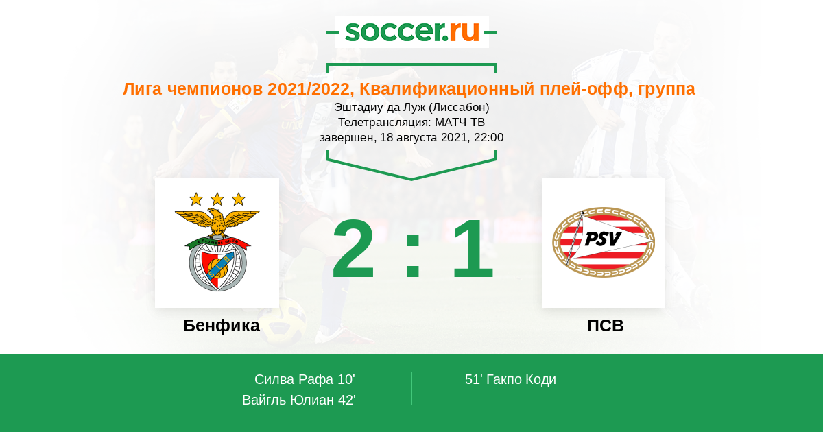 За ПСВ и отсутствие травм у лидеров, чем не может похвастаться "Бенфика", у которой игру пропустят Вертонген и Сеферович (оба травмированы).