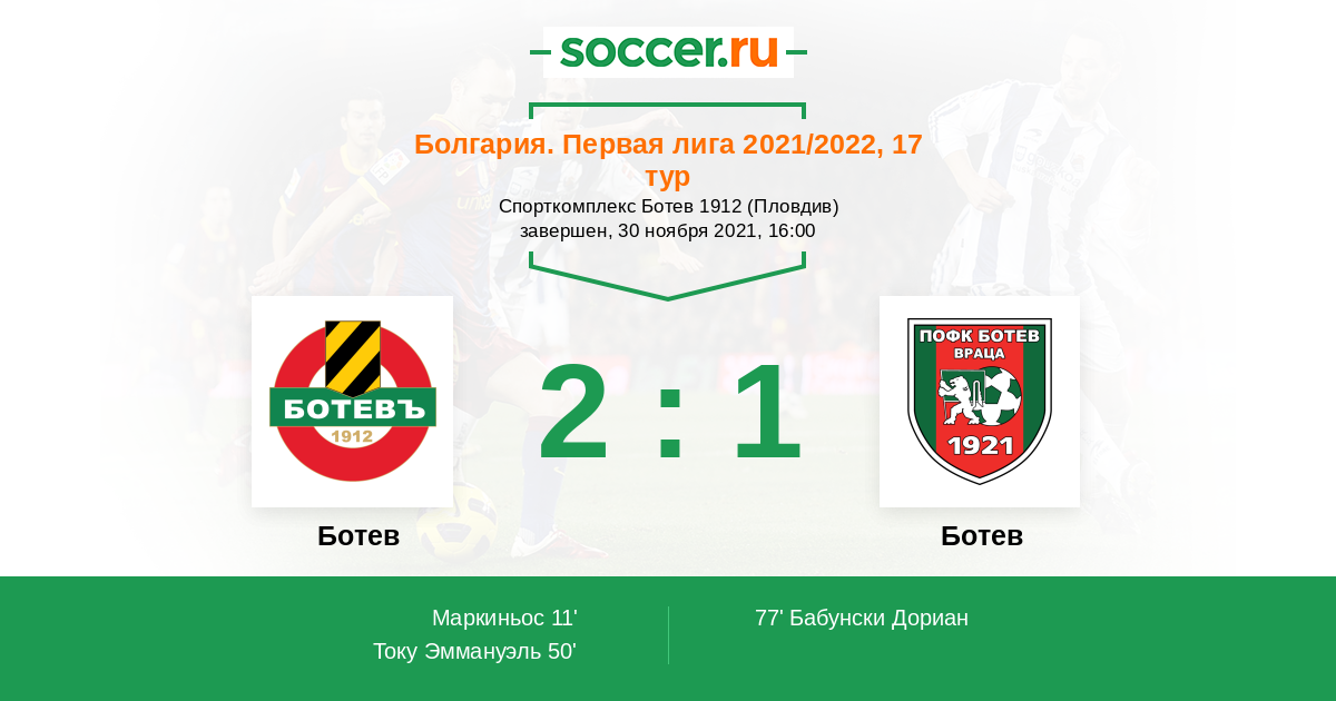 Болгария. Первая лига 05.11.2022 Ботев Логотип футбольный клуб Ботев (Пловдив) 6:0 Логотип футбольный клуб Ботев (Враца) Ботев