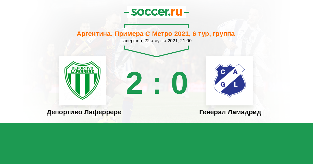 Аргентина. Примера С Метро 13.02.2022 Депортиво Лаферрере Логотип футбольный клуб Депортиво Лаферрере 0:0 Логотип Генерал Ламадрид (Буэнос-Айрес) Генерал Ламадрид
