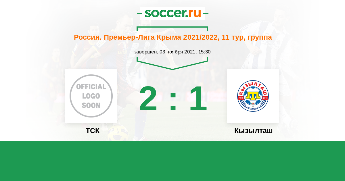 Россия. Премьер-Лига Крыма 21.03.2021 ТСК Логотип футбольный клуб ТСК (Симферополь) 2:2 Логотип футбольный клуб Кызылташ (Бахчисарай) Кызылташ