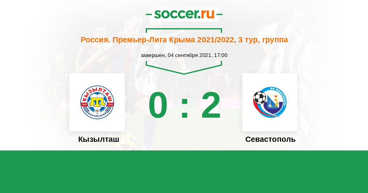 Россия. Премьер-Лига Крыма 13.06.2021 Севастополь Логотип футбольный клуб Севастополь 4:2 Логотип футбольный клуб Кызылташ (Бахчисарай) Кызылташ