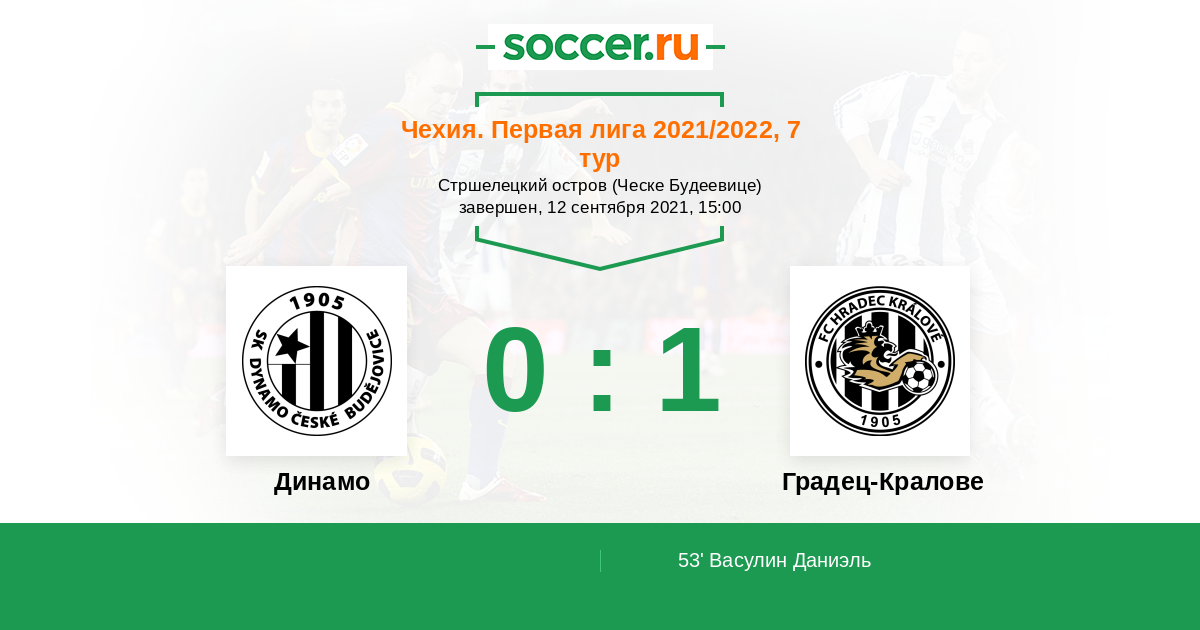 Чехия. Первая Лига 01.04.2012 Динамо Логотип футбольный клуб Динамо (Ческе-Будеевице) 1:0 Логотип футбольный клуб Градец-Кралове Градец-Кралове