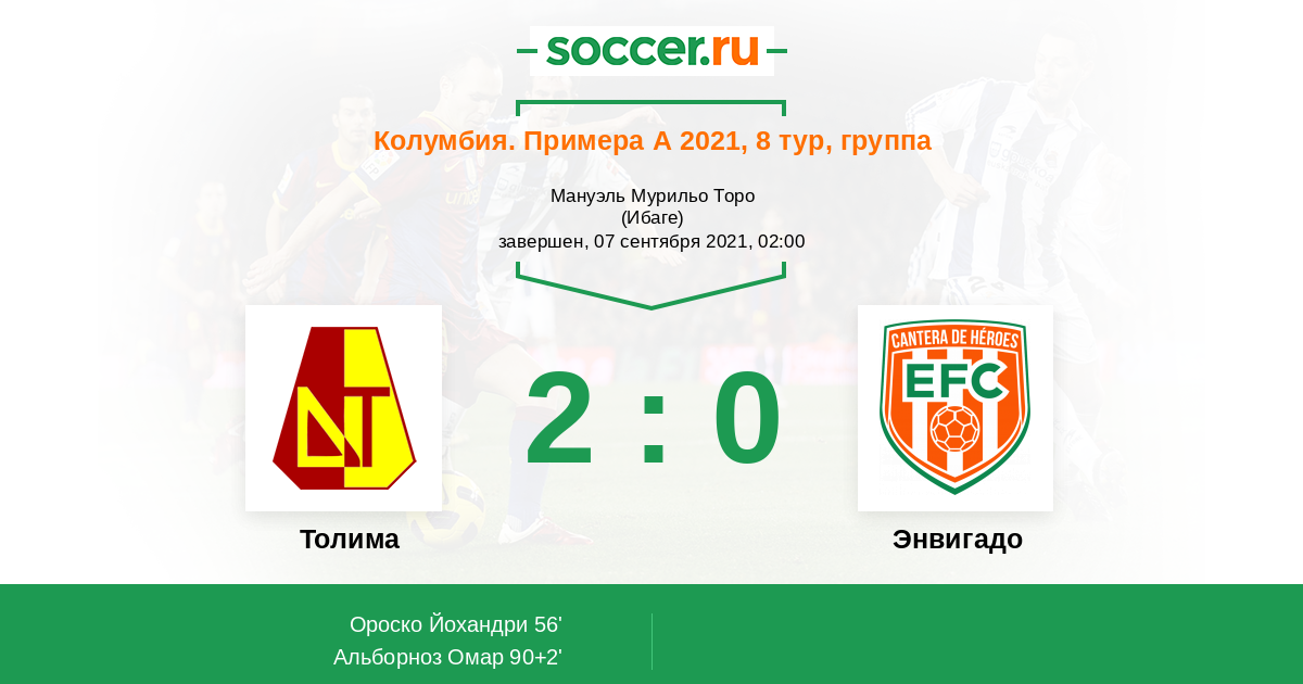 Колумбия. Примера А 22.09.2023 Толима Логотип футбольный клуб Толима (Ибаге) 2:0 Логотип футбольный клуб Энвигадо Энвигадо