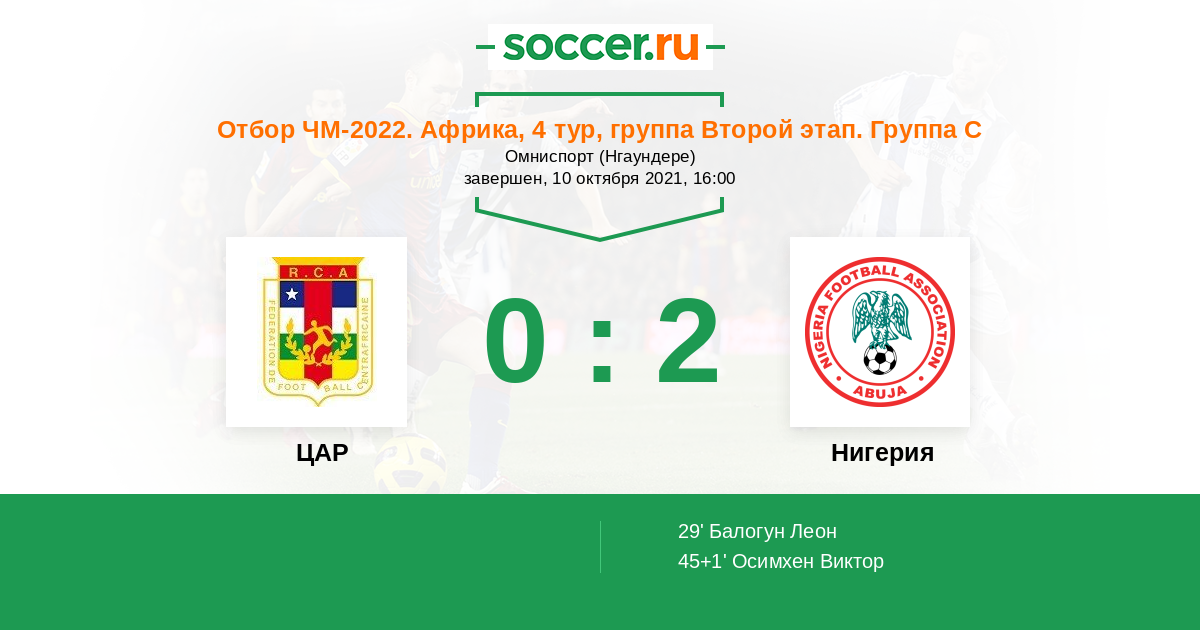 Почему такой прогноз? Нигерийцы сильнее классом своего сегодняшнего соперника, и настроена заработать свою путёвку на чемпионат мира в Катар. Для этого им необходимо взять реванш за нелепое поражение трёхдневной давности.