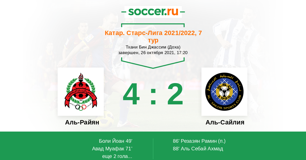 Катар. Старс Лига 25.10.2018 Аль-Сайлия Логотип футбольный клуб Аль-Сайлия (Доха) 1:2 Логотип футбольный клуб Аль-Райян Аль-Райян