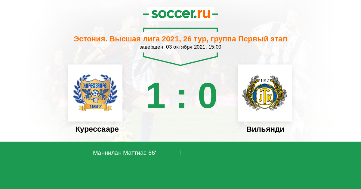 Эстония. Высшая лига 19.11.2021 Вильянди Логотип футбольный клуб Вильянди 0:2 Логотип футбольный клуб Курессааре Курессааре