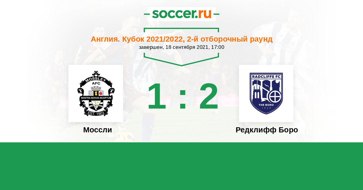 Англия. Первый дивизион истмийской лиги: Север 22.09.2012 Редклифф Боро Логотип футбольный клуб Редклифф Боро 1:2 Логотип футбольный клуб Моссли Моссли