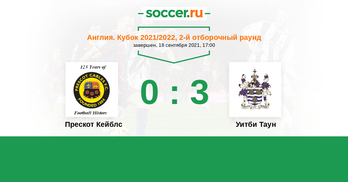Англия. Кубок 16.09.2023 Уитби Таун Логотип футбольный клуб Уитби Таун 2:1 Логотип футбольный клуб Прескот Кейблс Прескот Кейблс