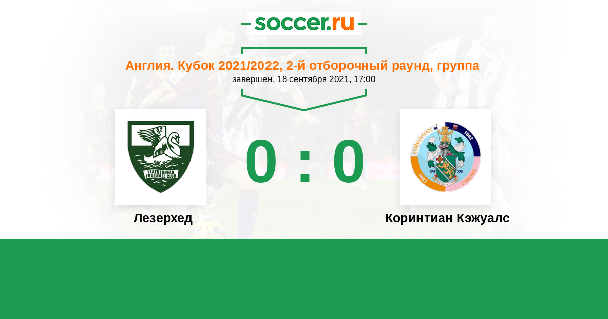 Англия. Кубок 21.09.2021 Коринтиан Кэжуалс Логотип футбольный клуб Коринтиан Кэжуалс (Лондон) 3:0 Логотип футбольный клуб Лезерхед Лезерхед