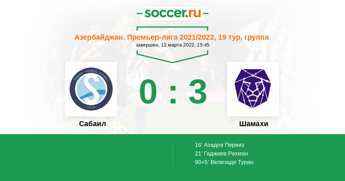 Азербайджан. Премьер-Лига 26.01.2023 Шамахи Логотип футбольный клуб Шамахи (Баку) 2:1 Логотип футбольный клуб Сабаил (Баку) Сабаил