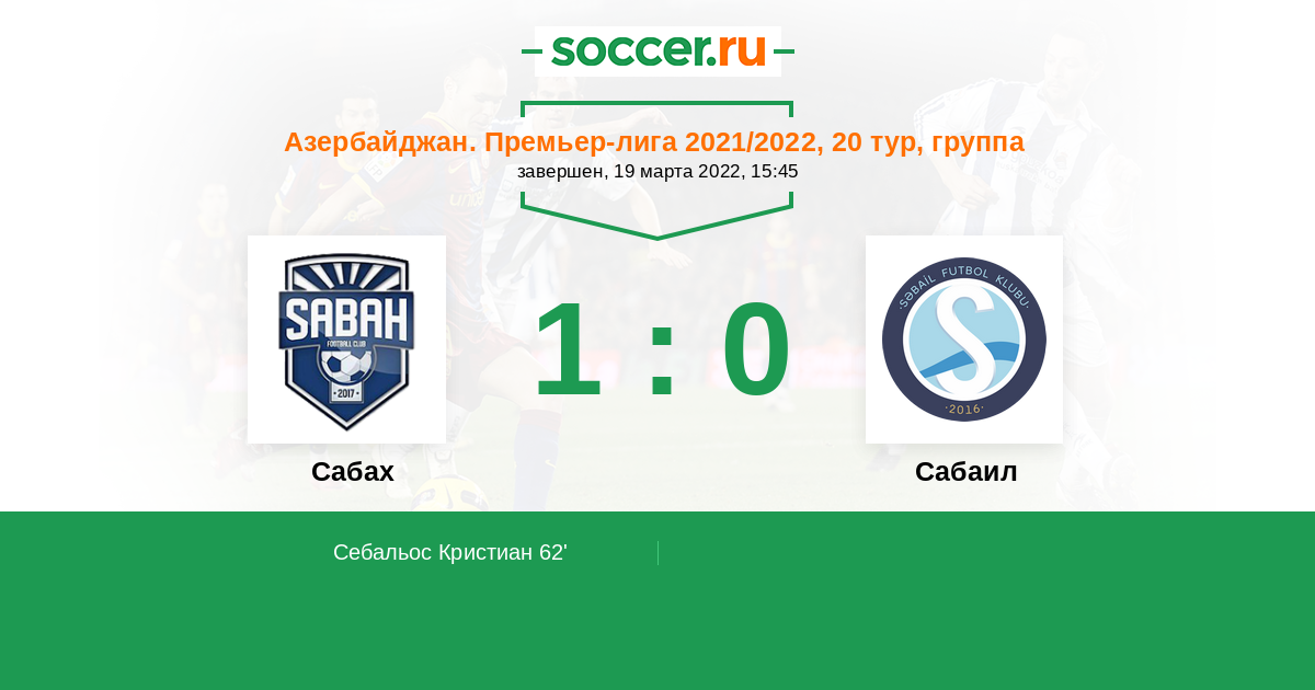 Азербайджан. Премьер-Лига 07.04.2019 Сабах Логотип футбольный клуб Сабах (Баку) 3:1 Логотип футбольный клуб Сабаил (Баку) Сабаил