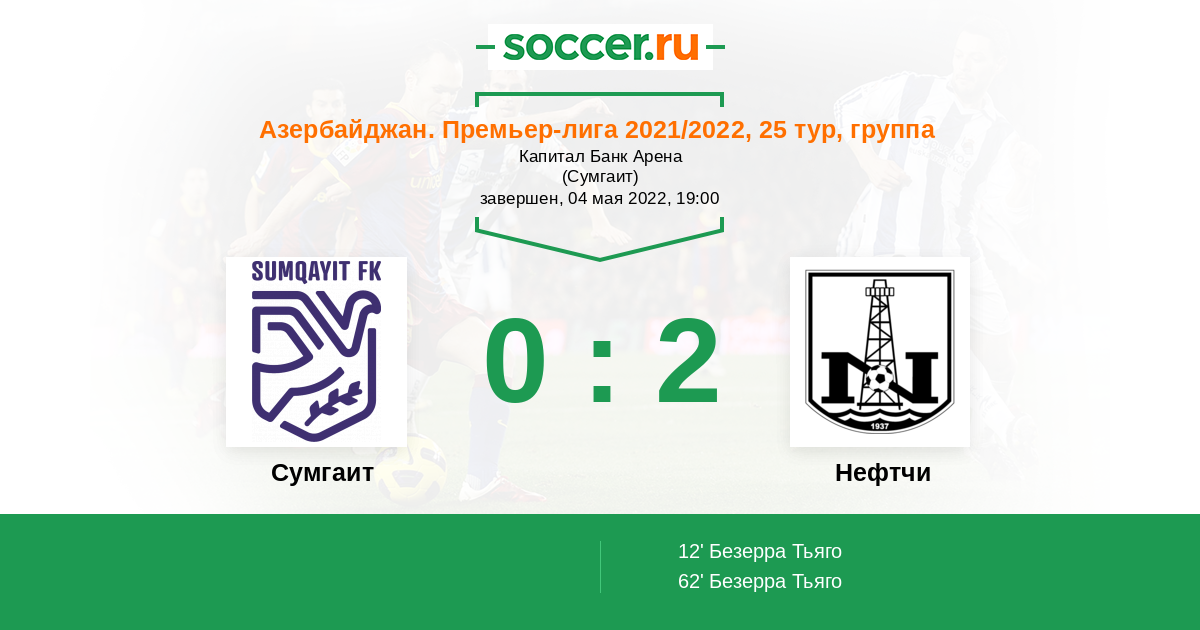 Азербайджан. Премьер-Лига 20.04.2014 Нефтчи Логотип футбольный клуб Нефтчи (Баку) 1:3 Логотип футбольный клуб Сумгаит Сумгаит