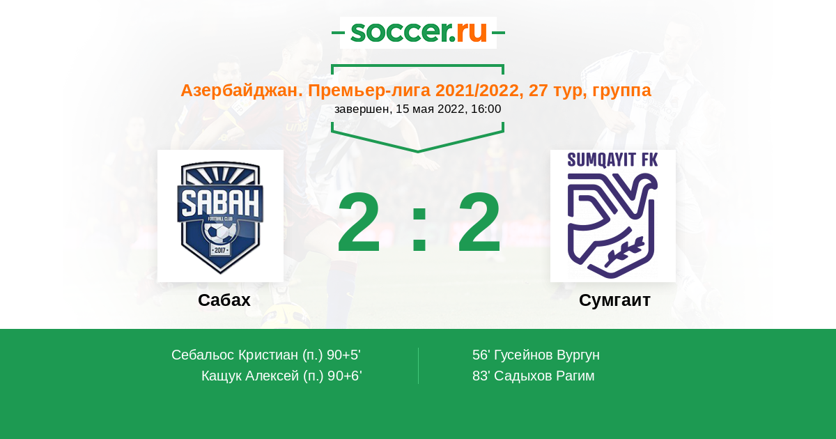 Азербайджан. Премьер-Лига 07.08.2022 Сабах Логотип футбольный клуб Сабах (Баку) 3:0 Логотип футбольный клуб Сумгаит Сумгаит