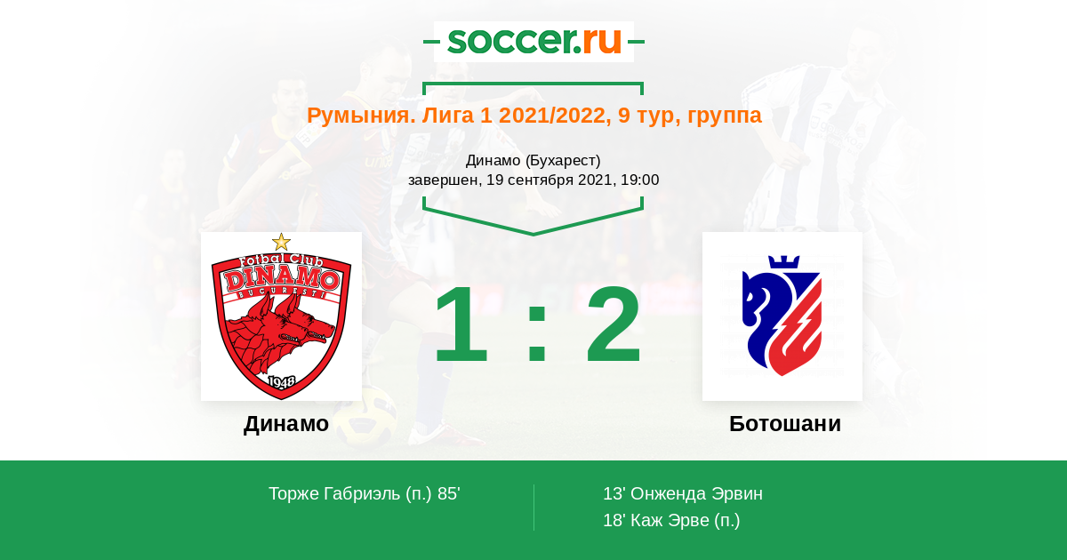 Румыния. Лига 1 11.09.2020 Динамо Логотип футбольный клуб Динамо (Бухарест) 1:1 Логотип футбольный клуб Ботошани Ботошани