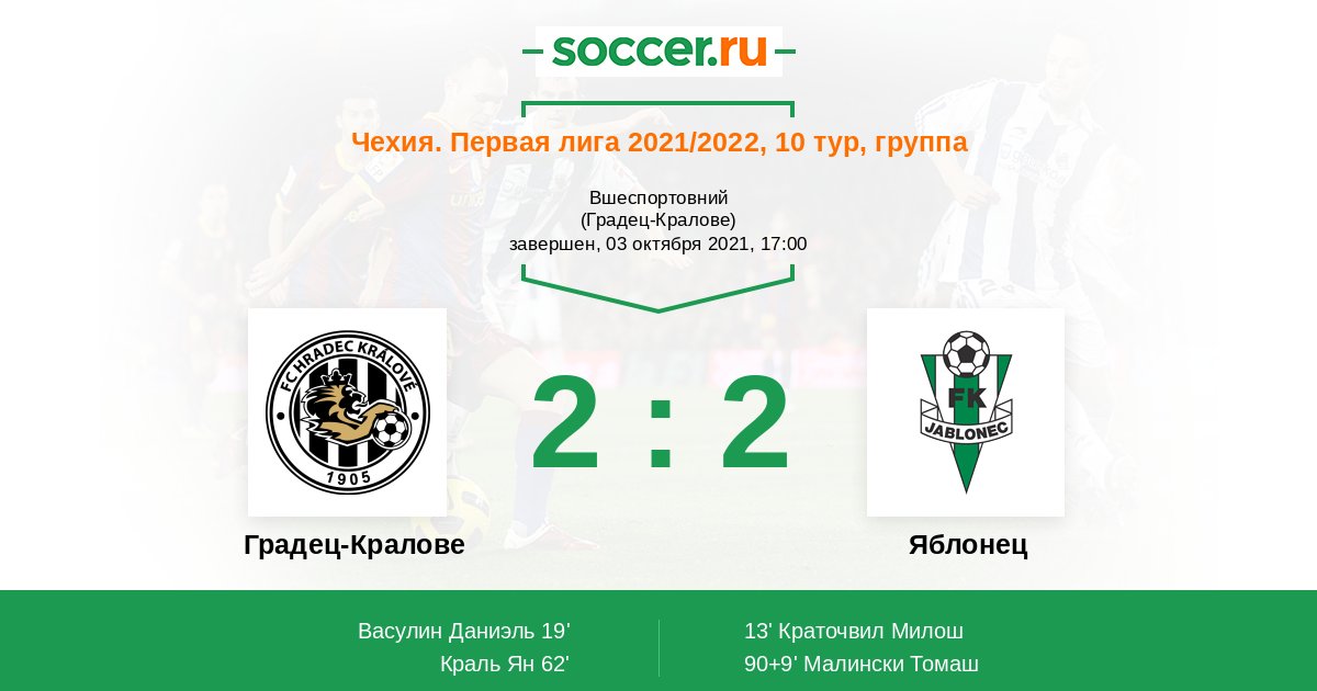 Чехия. Первая Лига 11.09.2022 Яблонец Логотип футбольный клуб Яблонец (Яблонец-над-Нисоу) 3:0 Логотип футбольный клуб Градец-Кралове Градец-Кралове